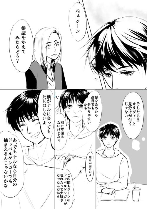ジーン達が通ってる学校のこととか全く分からないまま、何となくの背景で描いてるから細かい突っ込みはナシで…。小説にするという手もあったけど語彙力と構成について考えただけしんどかったので漫画に…。